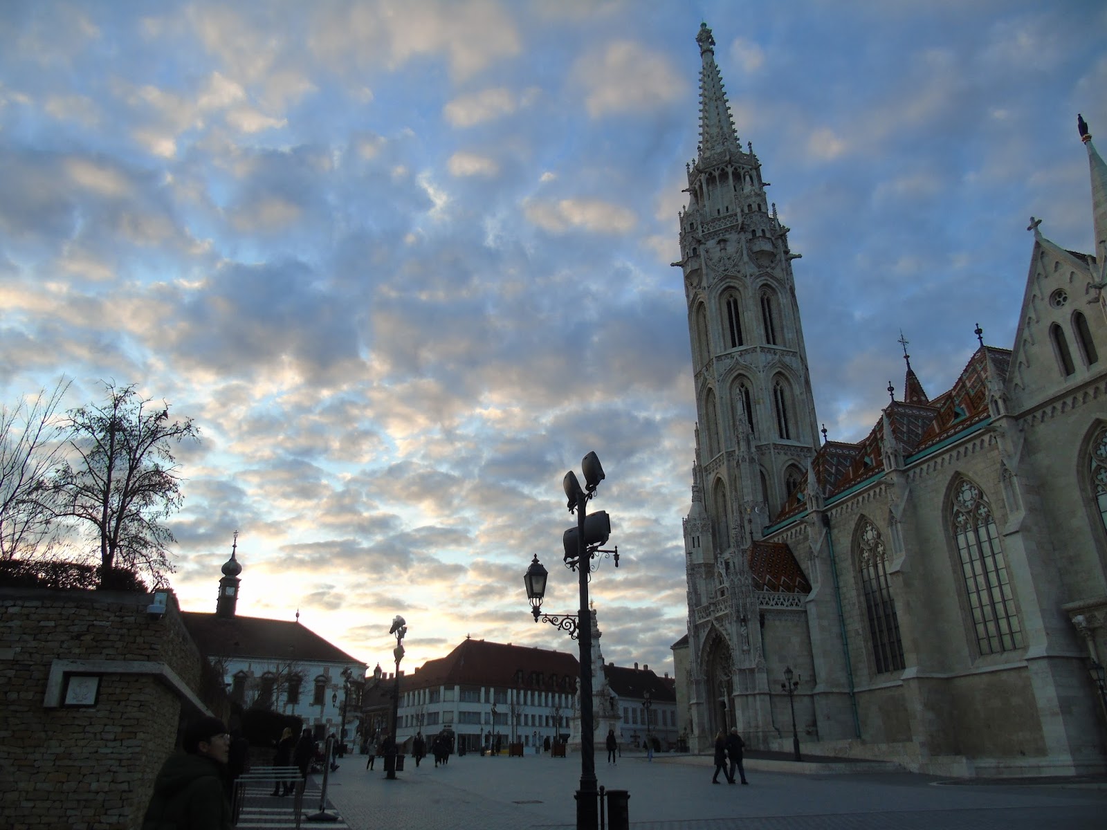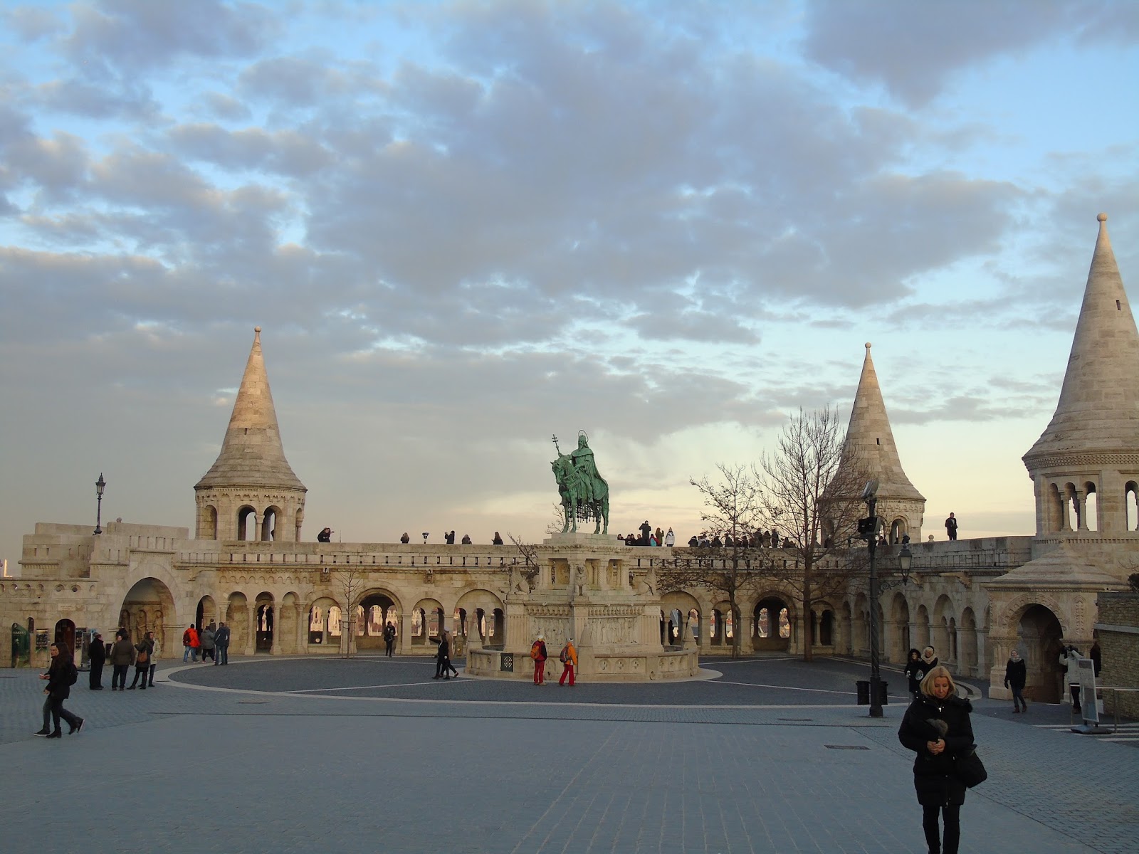Não conseguia parar de admirá-la de todos os ângulos. As cores se tornaram ainda mais vibrantes e bonitas por causa da luz de ocaso. Ao lado da igreja há uma estátua do rei Santo Estevão I e ao redor dela o monumento chamado o Bastião dos Pescadores com suas sete torres representando os povos magiares.