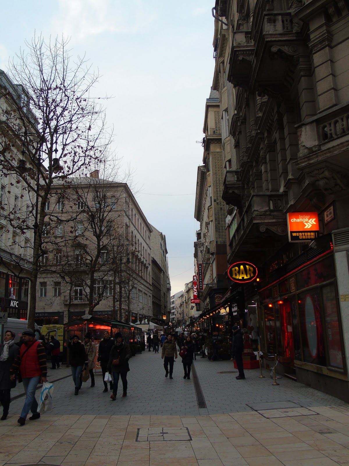 nome estranho nada mais era do que um bom e quente cozido, o qual eu devorei com a fome de leão feita pela andada longa e fria daquele dia. Perto do The Imperator há uma praça muito bacana que lembrou uma das Praças Matrizes de alguma cidadezinha do interior do Brasil, e, na mesma região, a famosa Praça Vörösmarty se abre com seus cafés, stands de comidas e bebidas típicas e lojas de grife.